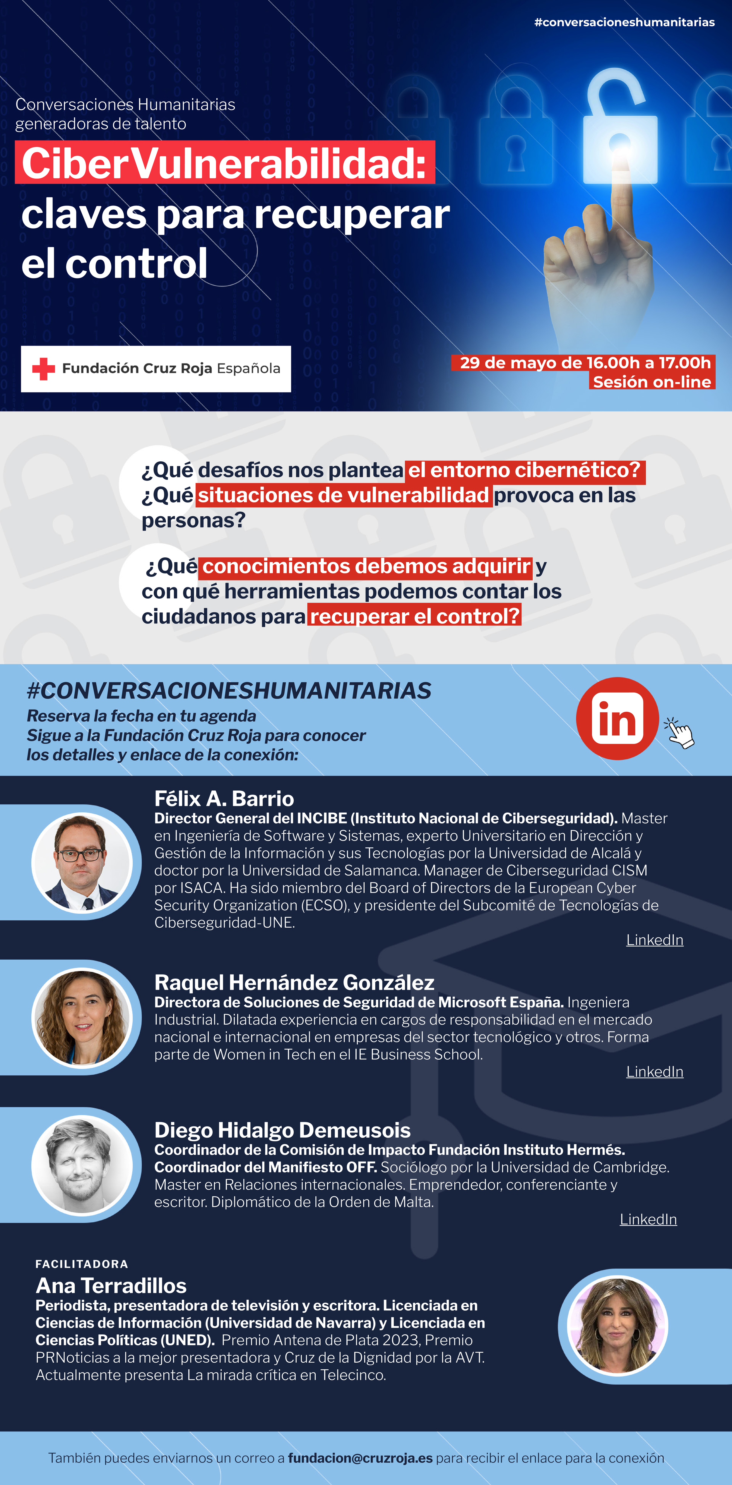 Sesión online, Conversaciones Humanitarias generadoras de talento (Fundación Cruz Roja) Wednesday 29 May 2024 16:00 17:00 Google Calendar ICS Conversaciones Humanitarias generadoras de talento
