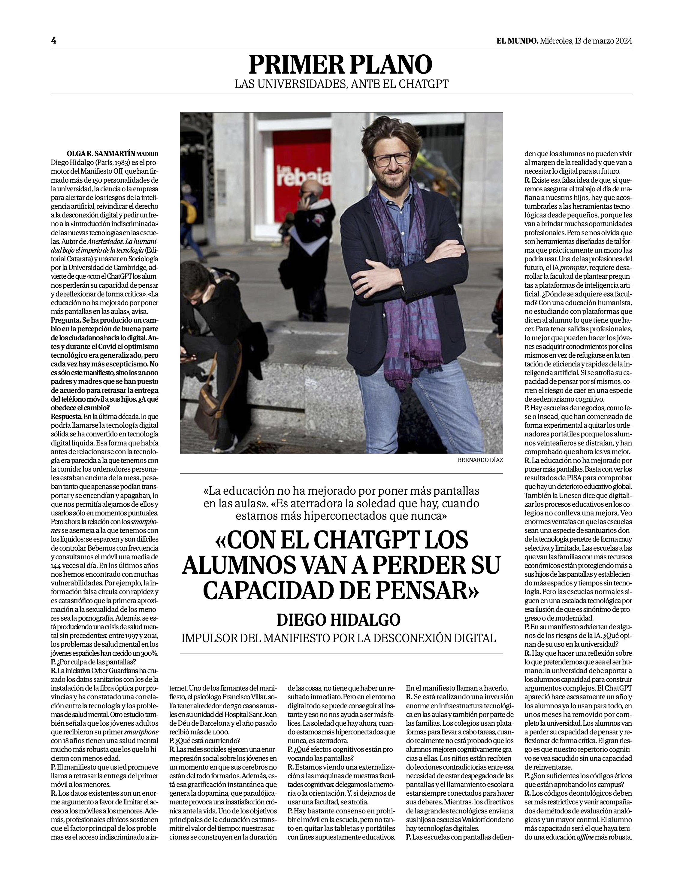 El impulsor del Movimiento OFF, Diego Hidalgo Demeusois, reclama una desescalada digital en todos los ciclos escolares…